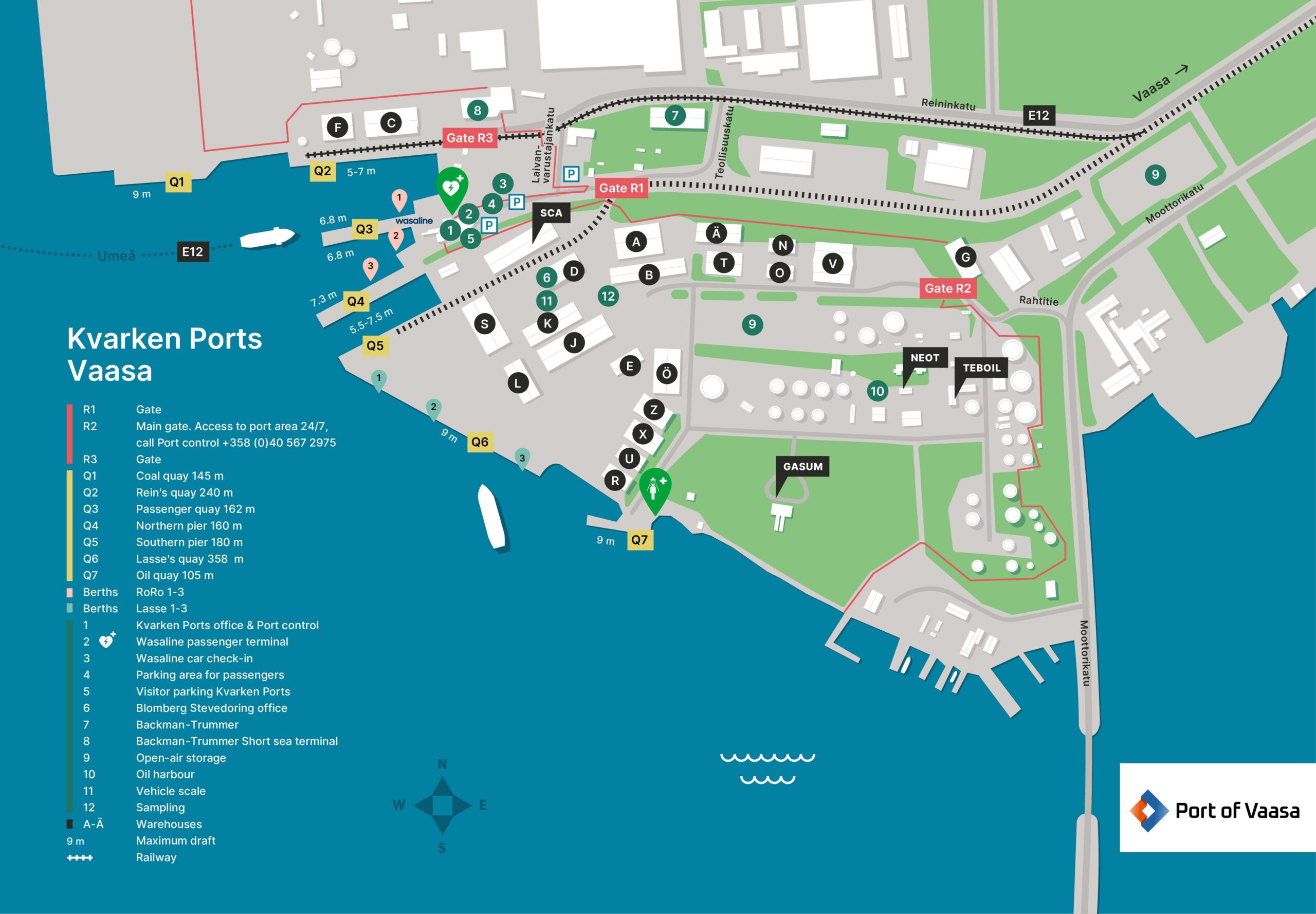 Vasa hamn ligger strategiskt nära den internationella flygplatsen inom räckhåll för goda landsvägs- och järnvägsförbindelser, vilket ger goda förutsättningar för hantering av bränslen, jordbruksprodukter samt projektlaster.Hamnen har kunnande och resurser för att hantera krävande projektlaster samt transporter från eller till regionens energi-, verkstads- och metallindustri. Vasa hamn kan erbjuda den nordligaste året om öppna vattenleden mellan två länder till Umeå och förenar leden E12 ända från Östra Finland till Norge på Atlantkusten.